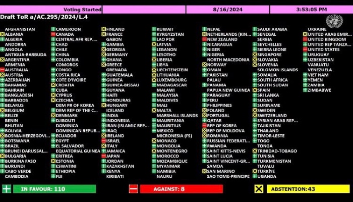 Abstention by all EU Member States, plus a few others. Outright voting against by, among others, the United States and the United Kingdom.
